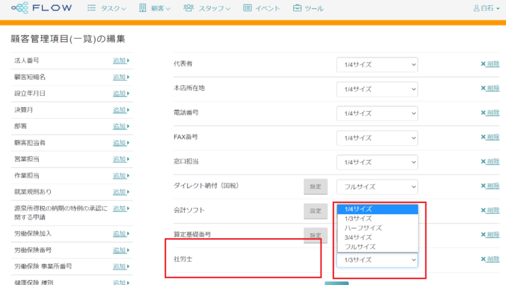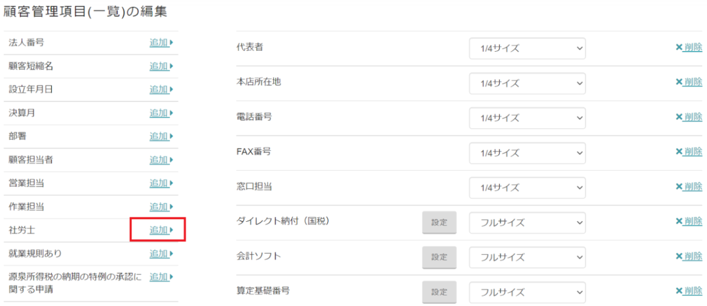 顧客一覧画面に表示する項目を、ご事務所の運用に合わせて編集できます。