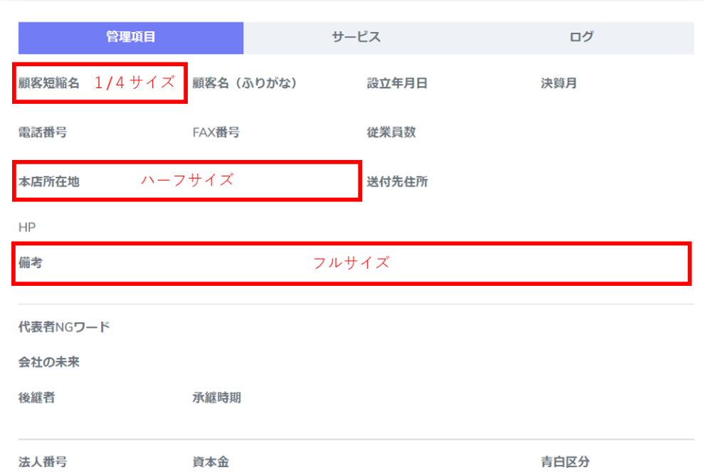 ※顧客詳細画面におけるボックスサイズについて(一例)