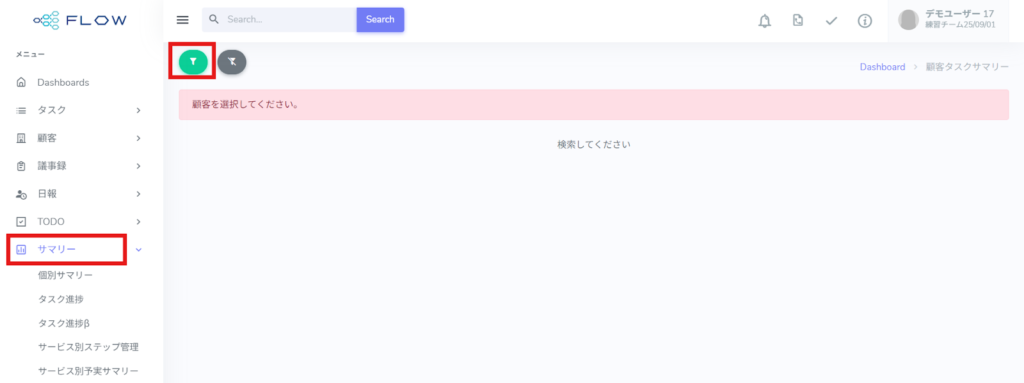 2.顧客タスクサマリーの操作方法