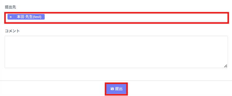 1.提出先を選択し、[提出]をクリックして完了です。