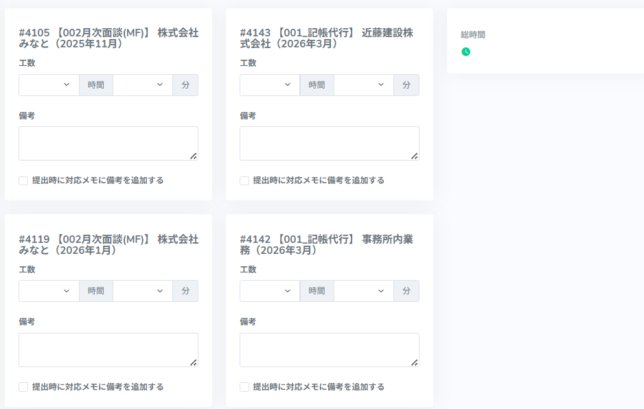 事務所内のTODOにかかった工数を追加する場合