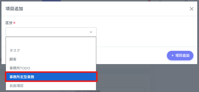 ※「事務所定型業務」は、自由に項目を設定できる機能です(設定は全体責任者権限以上)。