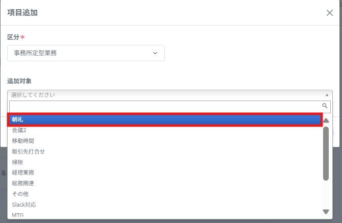 事務所内で定義している特定の業務(例:朝礼・会議など)にかかった工数を追加する場合