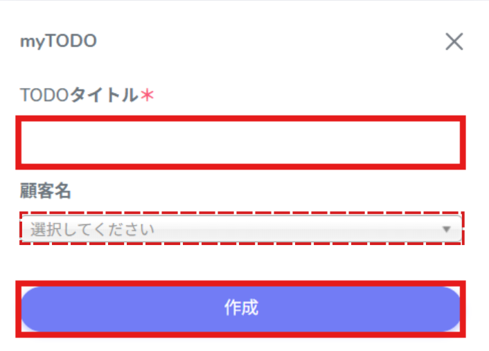 2.「TODOタイトル」「顧客名」を入力し、[作成]をクリックします。
