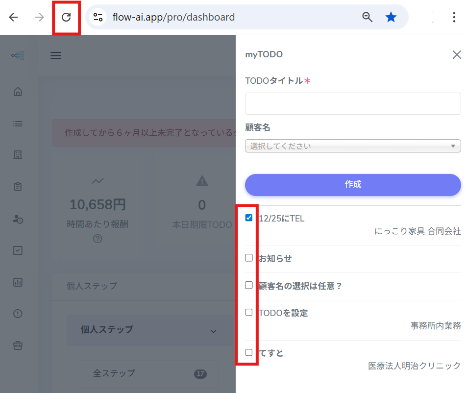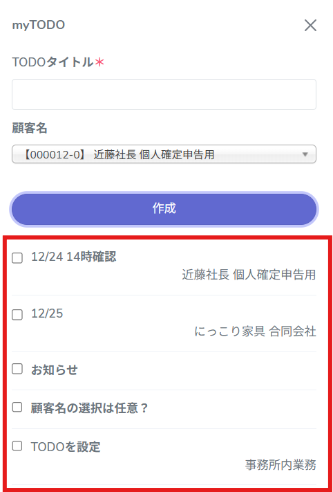 ※顧客詳細画面でmyTODOを開くと顧客名が自動で選択されます。