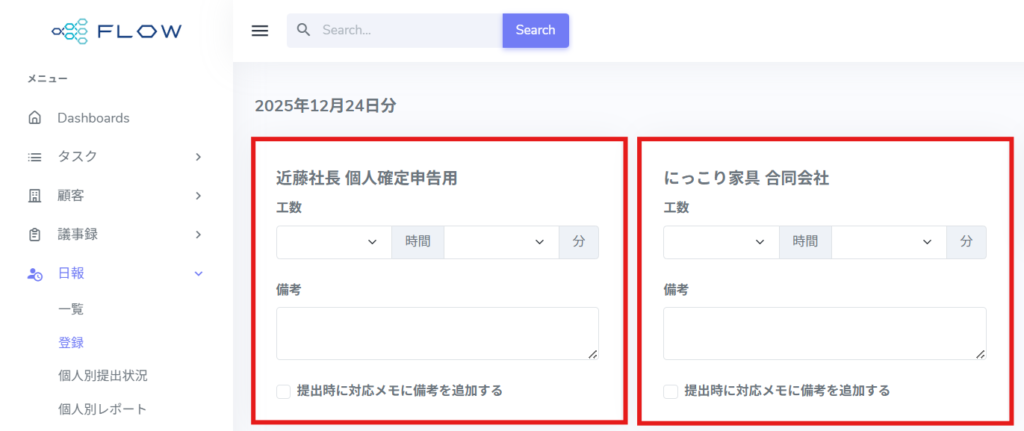 ※顧客に紐づけた「myTODO」の場合、完了時に自動で日報に顧客名が反映されます。