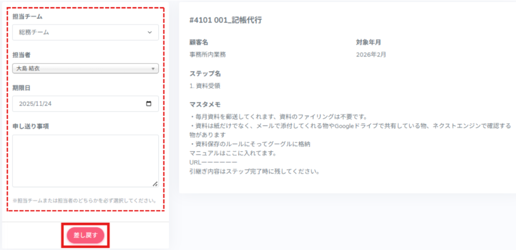 2. タスク詳細からステップを差し戻す方