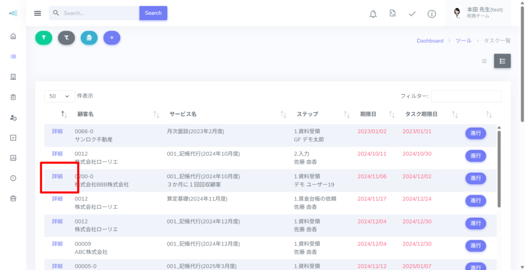 修正したいタスクの[詳細]をクリックします。