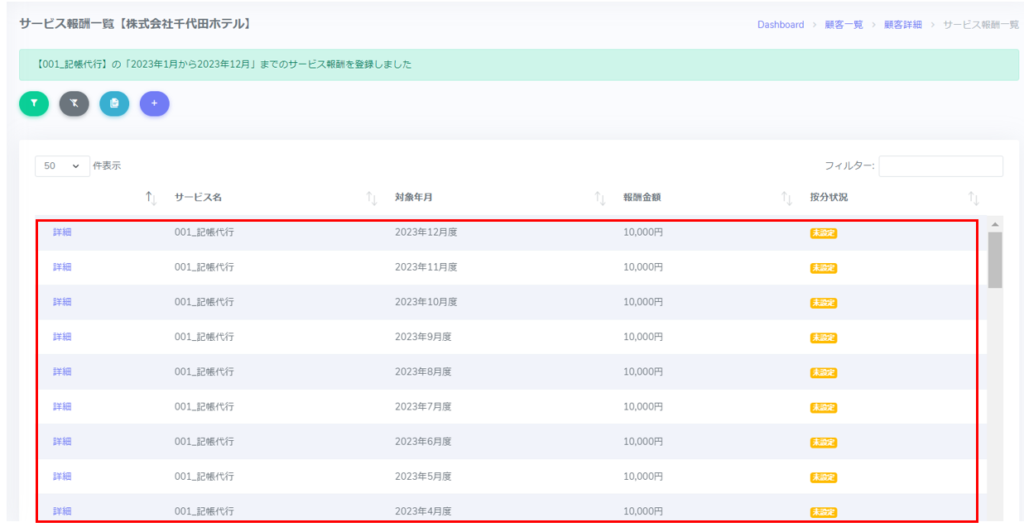 以上で顧客画面からの報酬の登録は完了です。