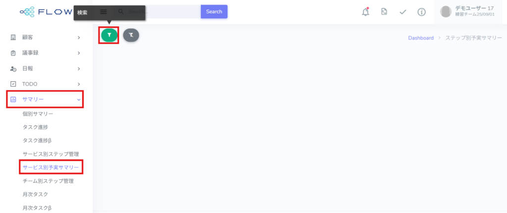 ステップ別予実サマリーでは、各ステップごとの 完了・未完了状況 をもとに、進捗の達成度を数値で確認することができます。