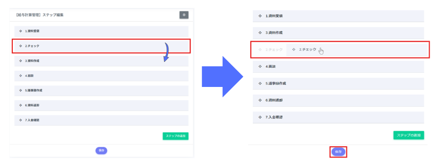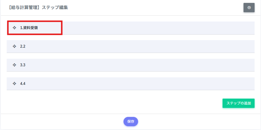 1.ステップが表示されている画面にて、該当のステップをドラッグ&ドロップで移動させます。