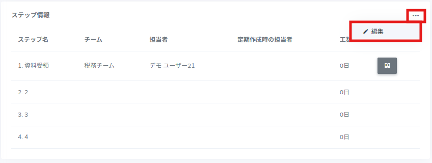 3.ステップ情報の右上[・・・]をクリックし、[編集]を選択します。