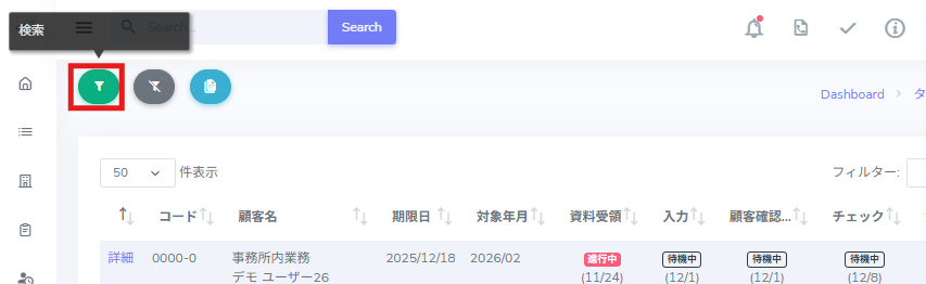 2.進捗一覧表の画面について