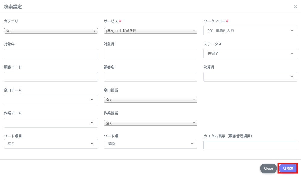 3.検索条件を入力し、[検索]をクリックします。