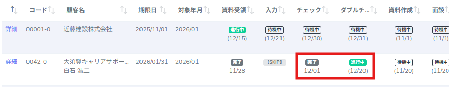 7.進行中だったステップが「完了」になり、次のステップが「進行中」に自動で更新されます。