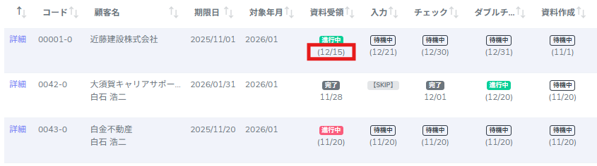 各ステータスの下に表示されている数字は、そのステップの期限日を表しています。