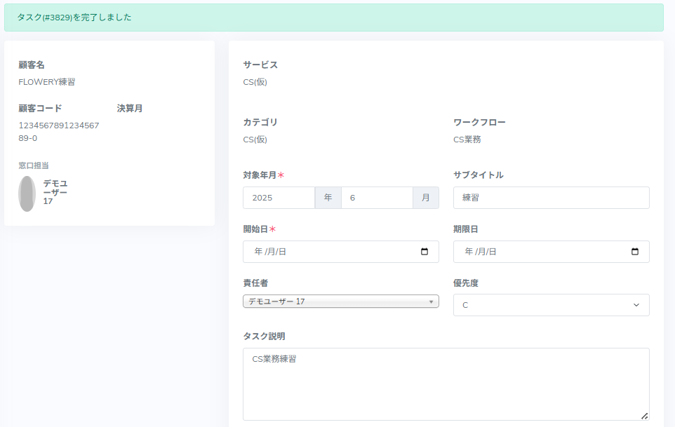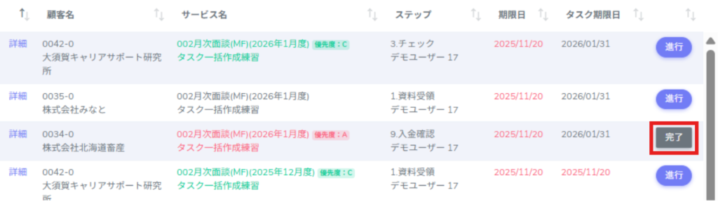 1.最後のタスクの場合は[完了]が表示されるので、クリックします。
