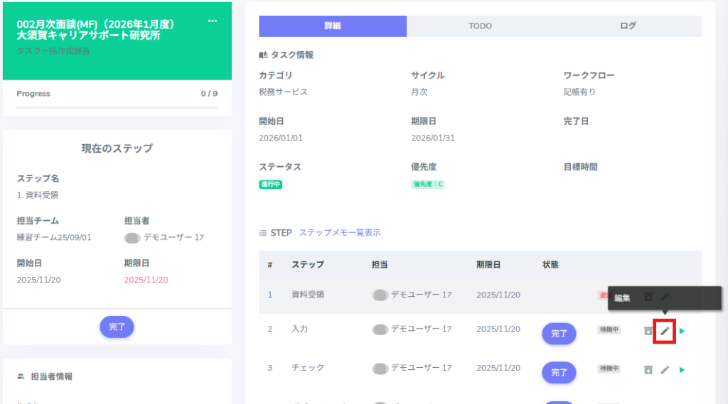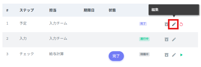 3.完了にしたステップの[編集]をクリックします。