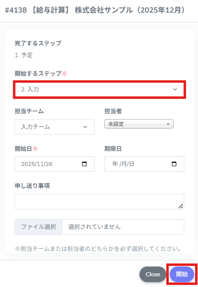 2.次のステップを選択し、[開始]をクリックします。
