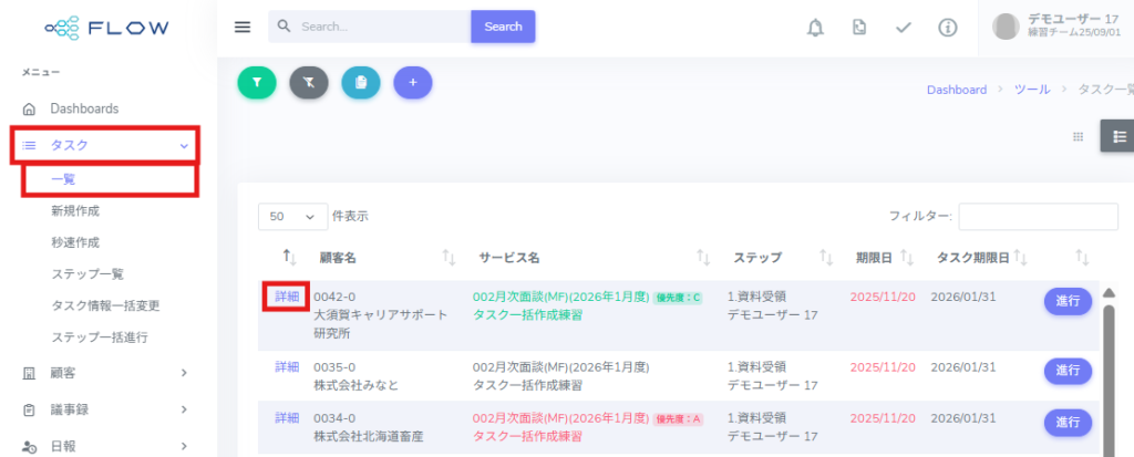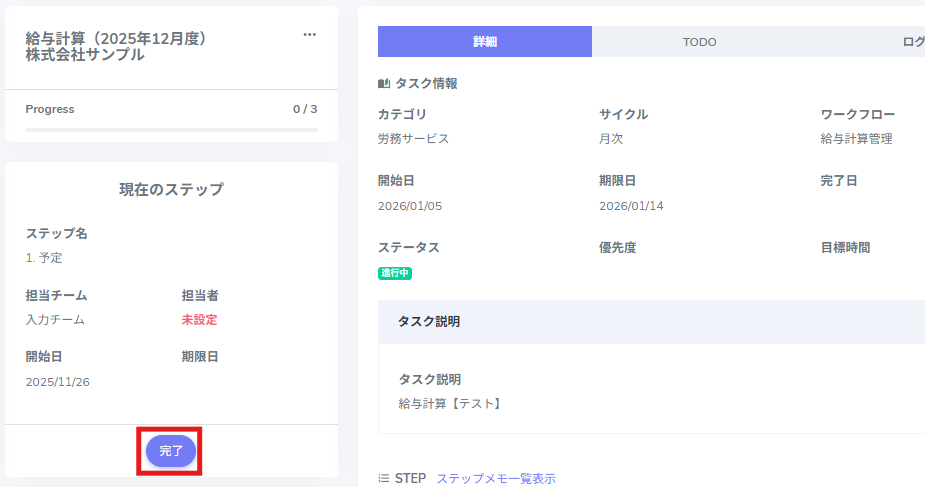 該当タスクの[詳細]をクリックします。
