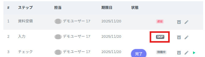 3.タスクに「SKIP」が反映されます。
