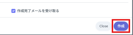 2.他の項目も設定し、[作成]をクリックします。