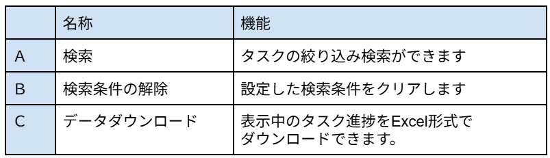 一覧には、検索結果のタスクが表示され、各ステップの進行状況が把握できます。