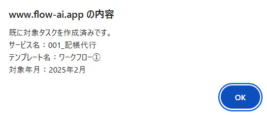 対象月(対象年)の中で、同じワークフローに対して2件以上のタスクを作成しようとすると